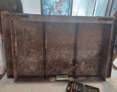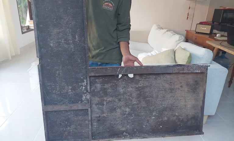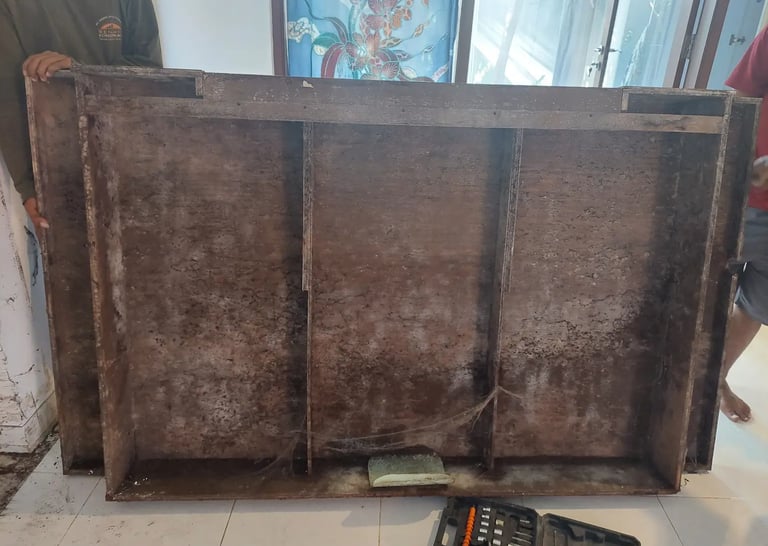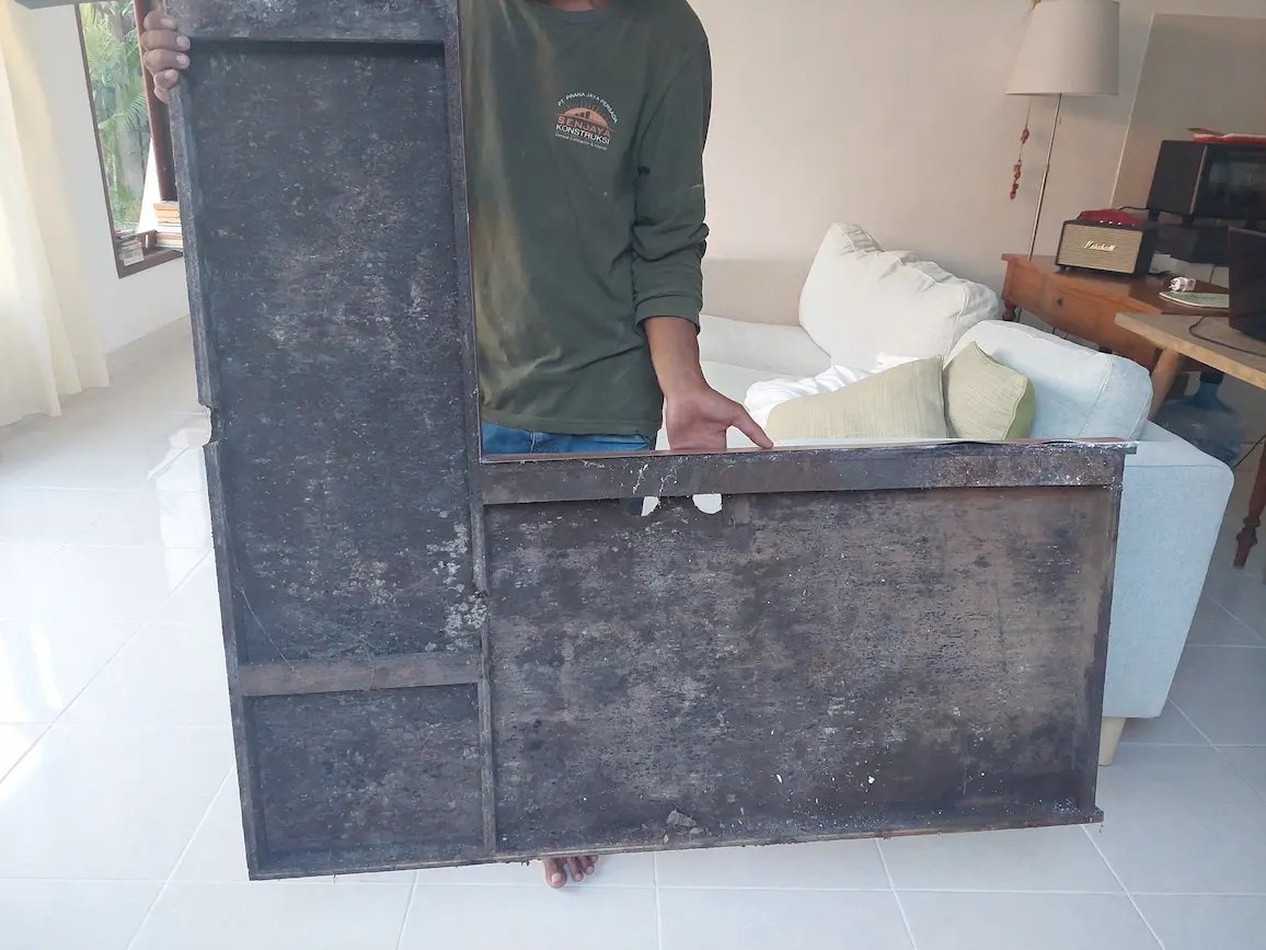 Parte de detrás del cabecero, era todo un bloque pegado a la pared y al suelo (sitio perfecto para el crecimiento de moho)