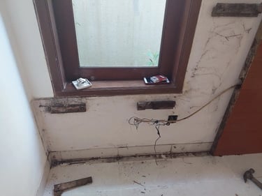 Cuando desmontamos el dormitorio, nos encontramos con lo que podéis ver en las fotos. Se confirmaron todas mis sospechas: descubrimos un problema que el dormitorio llevaba arrastrando mucho tiempo antes de que nosotros viviéramos aquí.