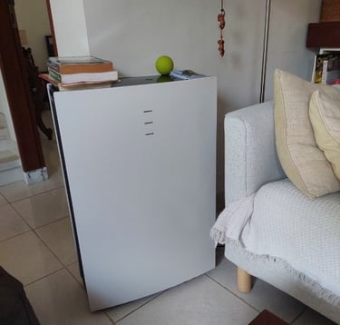 En climas tropicales (Bali), la humedad es el enemigo silencioso del carbón activado. Utilizo deshumidificadores de alto rendimiento (Notale y Rowenta) para observar cómo la saturación de humedad afecta la vida útil de los filtros y la generación de olores.