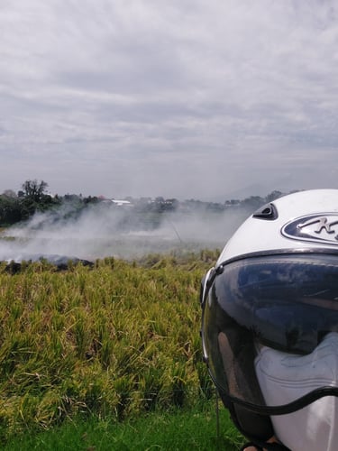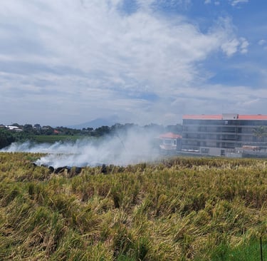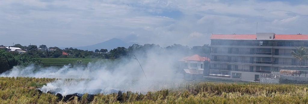 En Bali, las cosechas de arroz se dan cada 3 meses por lo que la quema de rastrojos de arrozales es constante, siempre hay algún campo cercano al que le toca esa fase.